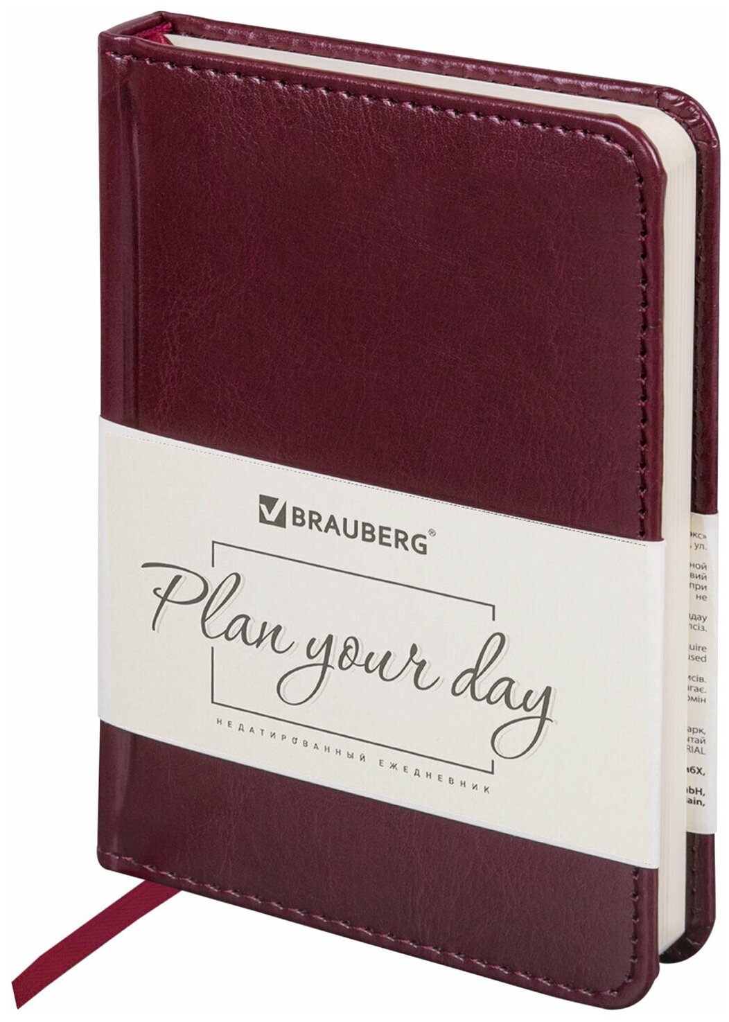 Ежедневник BRAUBERG недатированный малый формат (100х150 мм) А6, "Imperial", под гладкую кожу, 160 л., бордовый, 123466 470 ₽