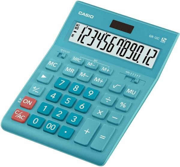 Калькулятор CASIO GR-12, голубой, 12 разрядов, бухгалтерский