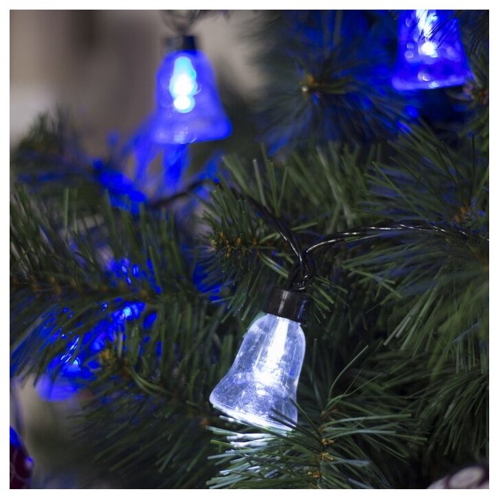 Гирлянда улично-комнатная Luazon Lighting Нить "Колокол", 5 м, LED(IP44)-40-220V, мигает, нить темная, свечение бело-синее (4464603) информация: