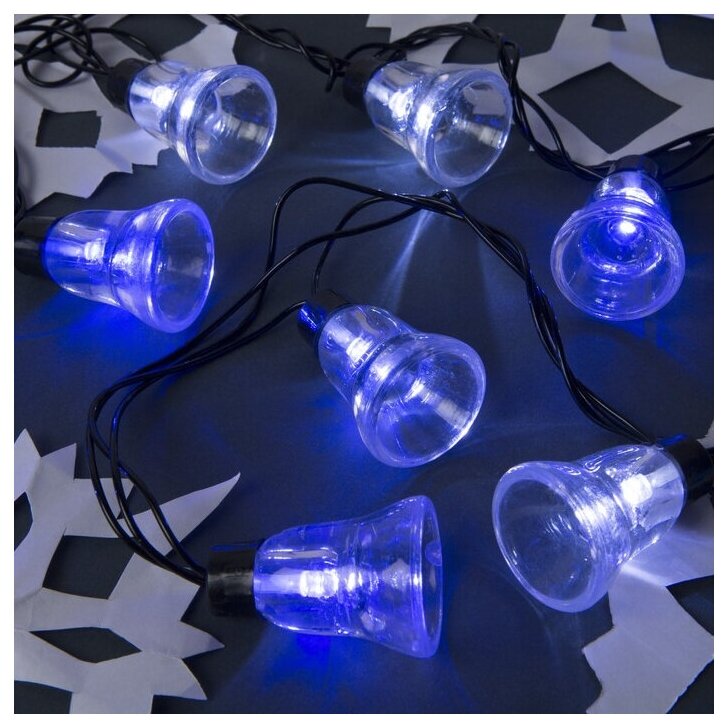 10 цен на Гирлянда улично-комнатная Luazon Lighting Нить "Колокол", 5 м, LED(IP44)-40-220V, мигает, нить темная, свечение бело-синее (4464603)