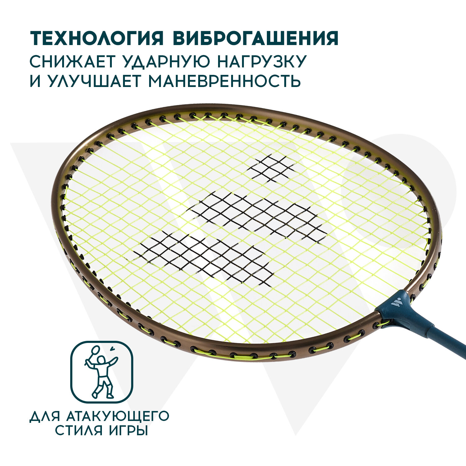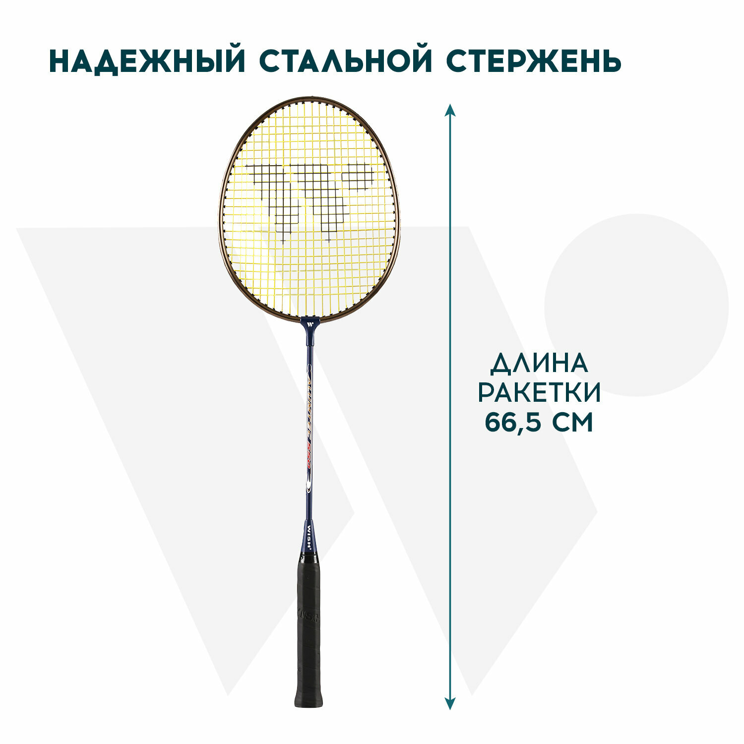 Набор для бадминтона Fusiontec 973K, 2 ракетки, 2 волана, полноразмерный чехол, золотой/синий 3 363 ₽