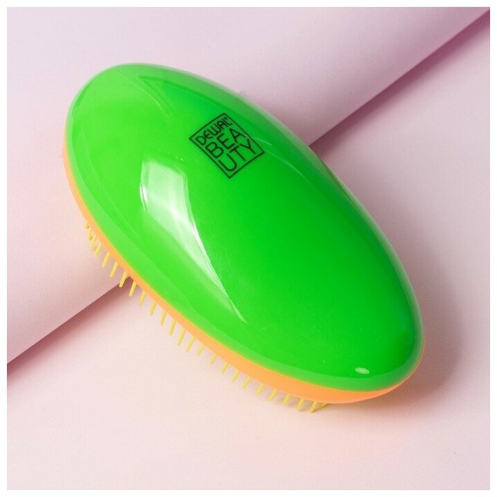 Dewal Beauty Щетка массажная, овальная, для легкого расчесывания волос, 12 x 8 х 4,5 см, пластик, цвет зеленый-оранжевый-желтый (DBT-01)