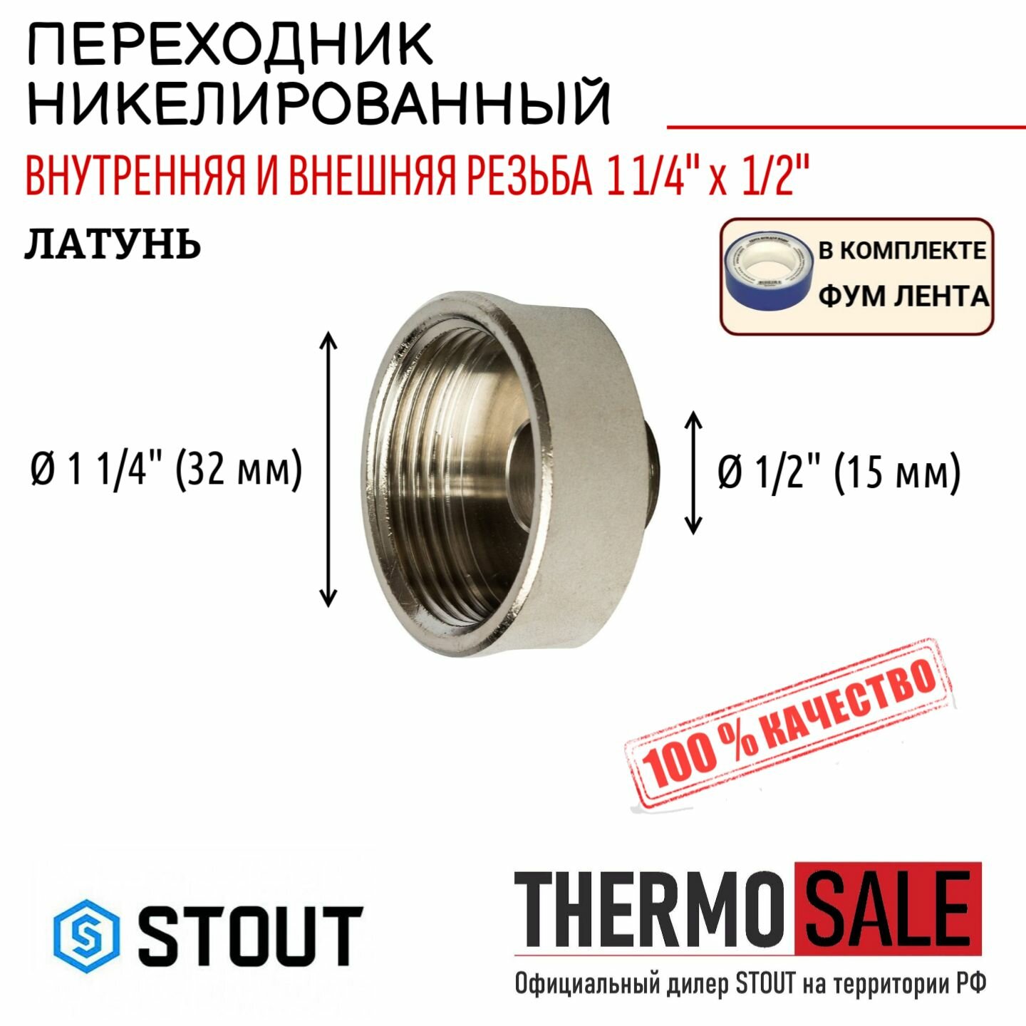 Переход с внутренней резьбы на наружную STOUT SFT 0008 - 1"1/4 x 1/2" (латунь никелированная) информация: