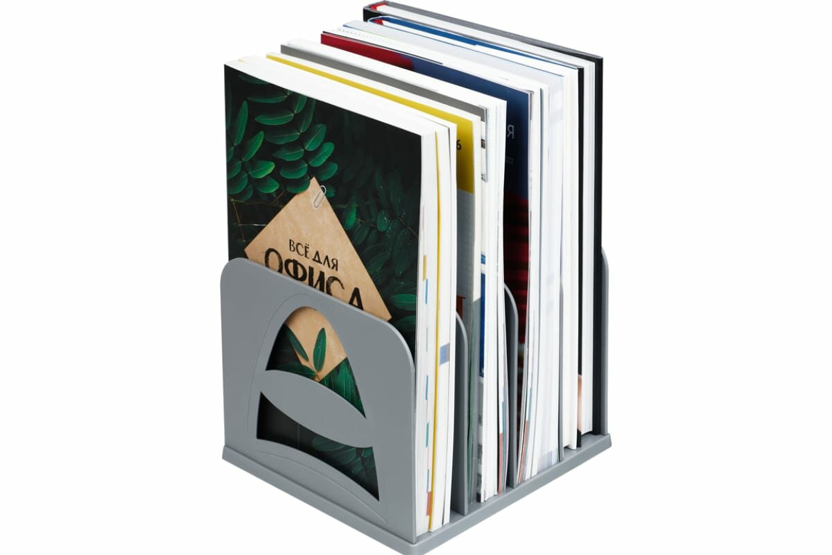 Сортер - подставка для журналов и бумаг, сборная, 4 отделения, серый Стамм 1889782 .