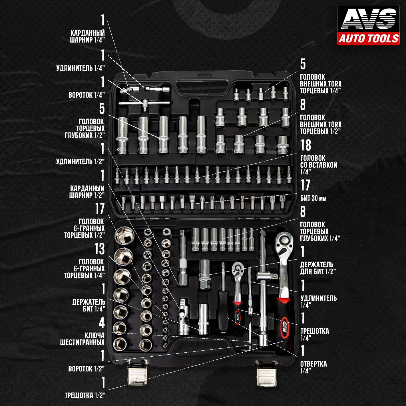 Универсальный набор инструментов для автомобиля AVS ATS-108, 108 предметов для ремонта, для дома (Профессиональный инструмент), A07825S информация: