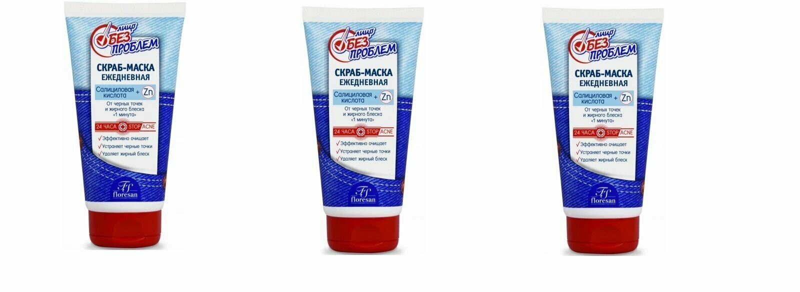 Floresan "Лицо без проблем"Скраб-маска ежедневная от черных точек и жирного блеска"1 минута", 150мл * 3шт