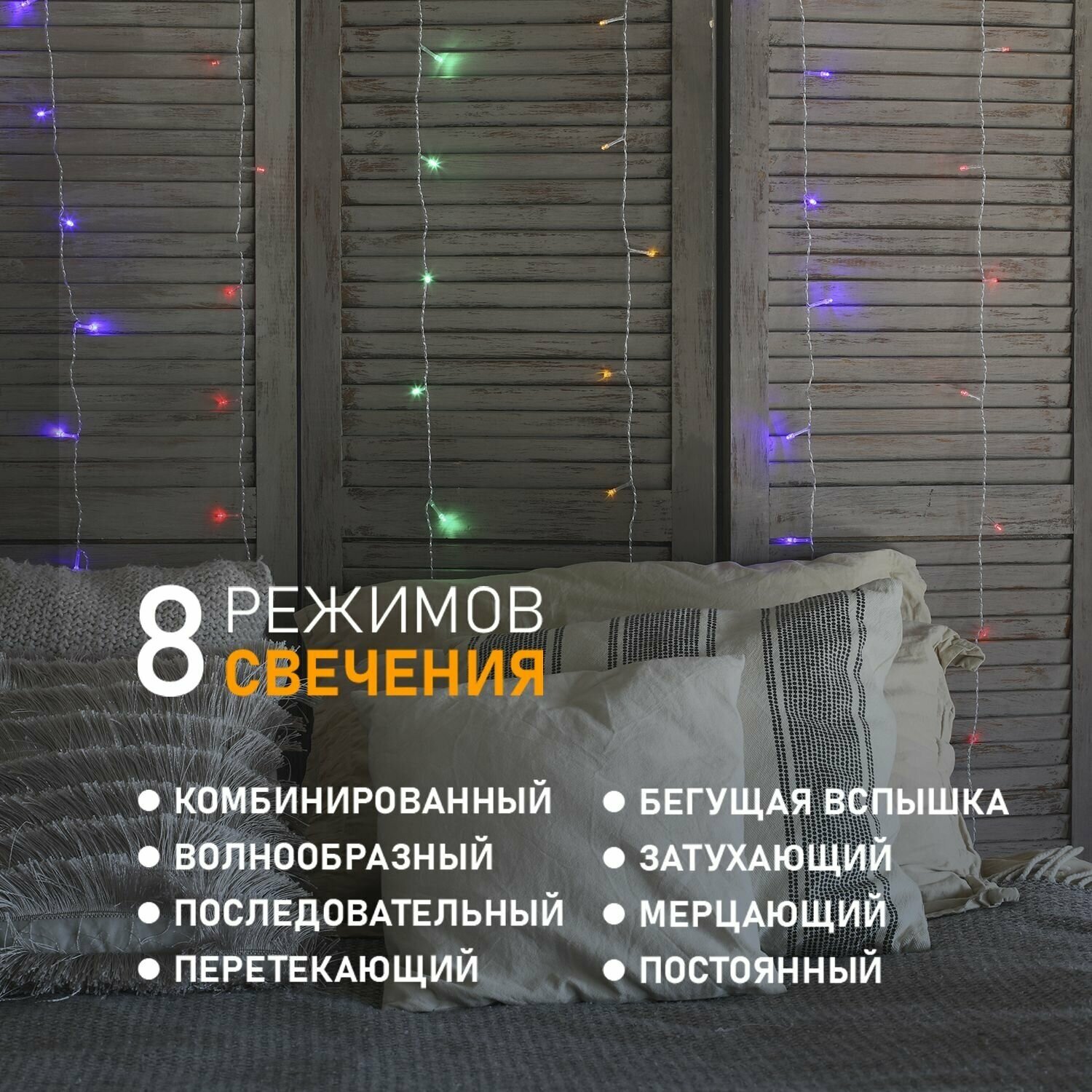 Светодиодная гирлянда Neon-night "Дождь" с насадками в виде шаров, 1.5х1.5 м, 8 режимов, 144 разноцветных светодиодов, прозрачный провод