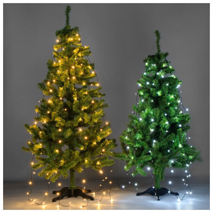 Елочная гирлянда с кольцом NEON-NIGHT 7 нитей по 1,8 метра, 8 режимов, 126 белых светодиодов, тёмно-зеленый провод 1 300 ₽