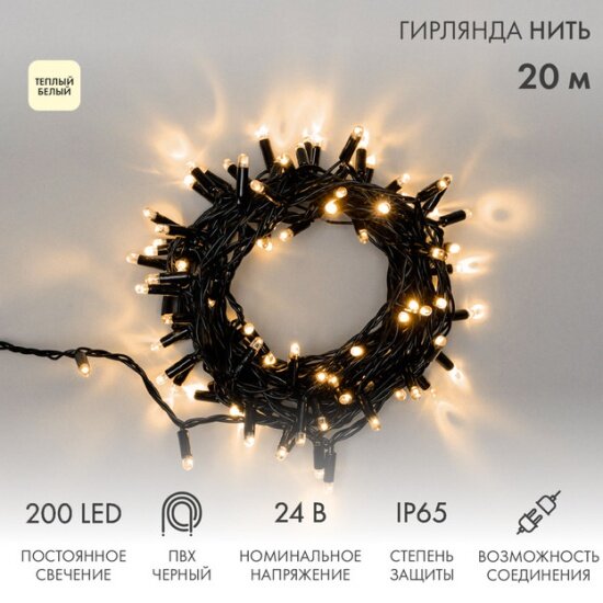 Гирлянда модульная "Дюраплей Led" 20м 200 LED белый Пвх, Теплый Белый 24В 315-126 .