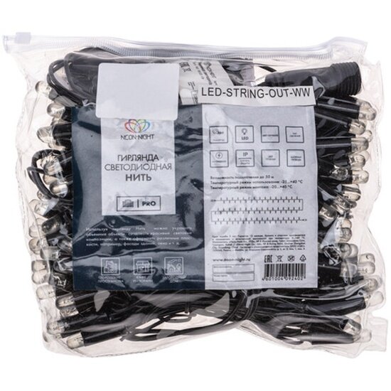 Гирлянда Neon-Night "Нить" (дюраплей) 12м, постоянное свечение, черный каучук, 230В, цвет Тёплый белый 315-136