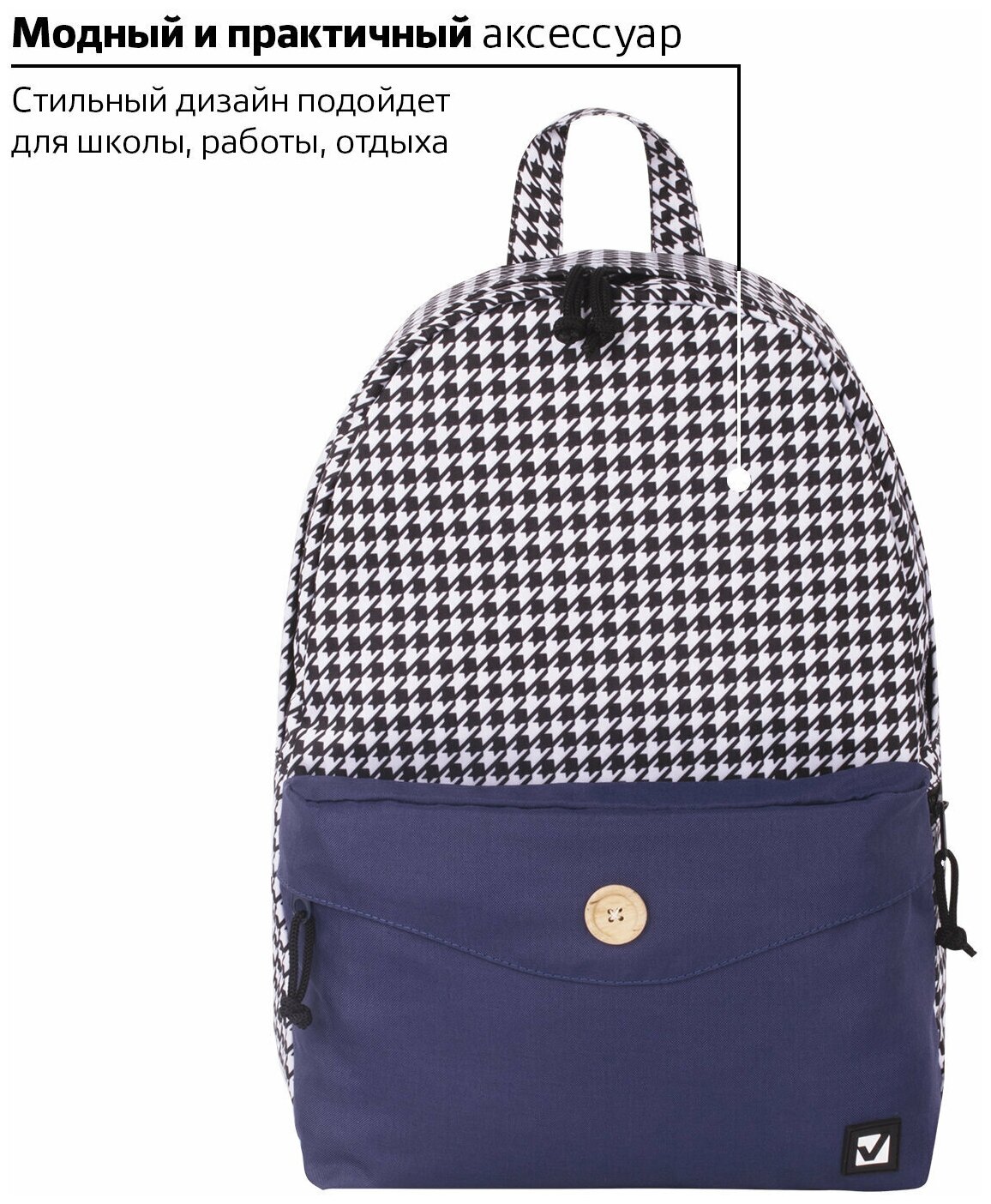 Рюкзак BRAUBERG SYDNEY универсальный, карман с пуговицей, бело-синий, узор клетка, 38х27х12 см, 228840 информация: