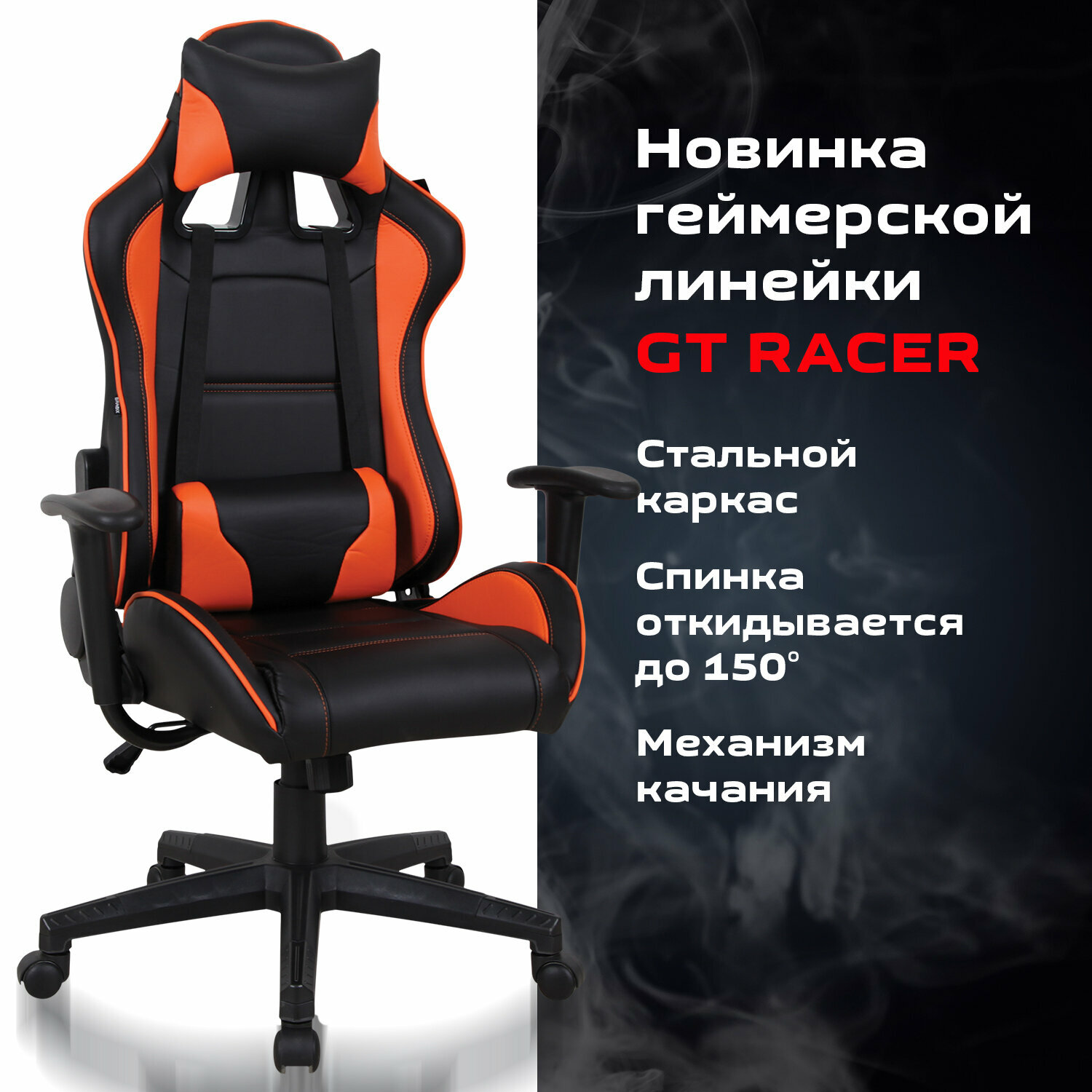 Кресло компьютерное BRABIX «GT Racer GM-100», две подушки, экокожа, черное/оранжевое, 531925 /Квант продажи 1 ед./