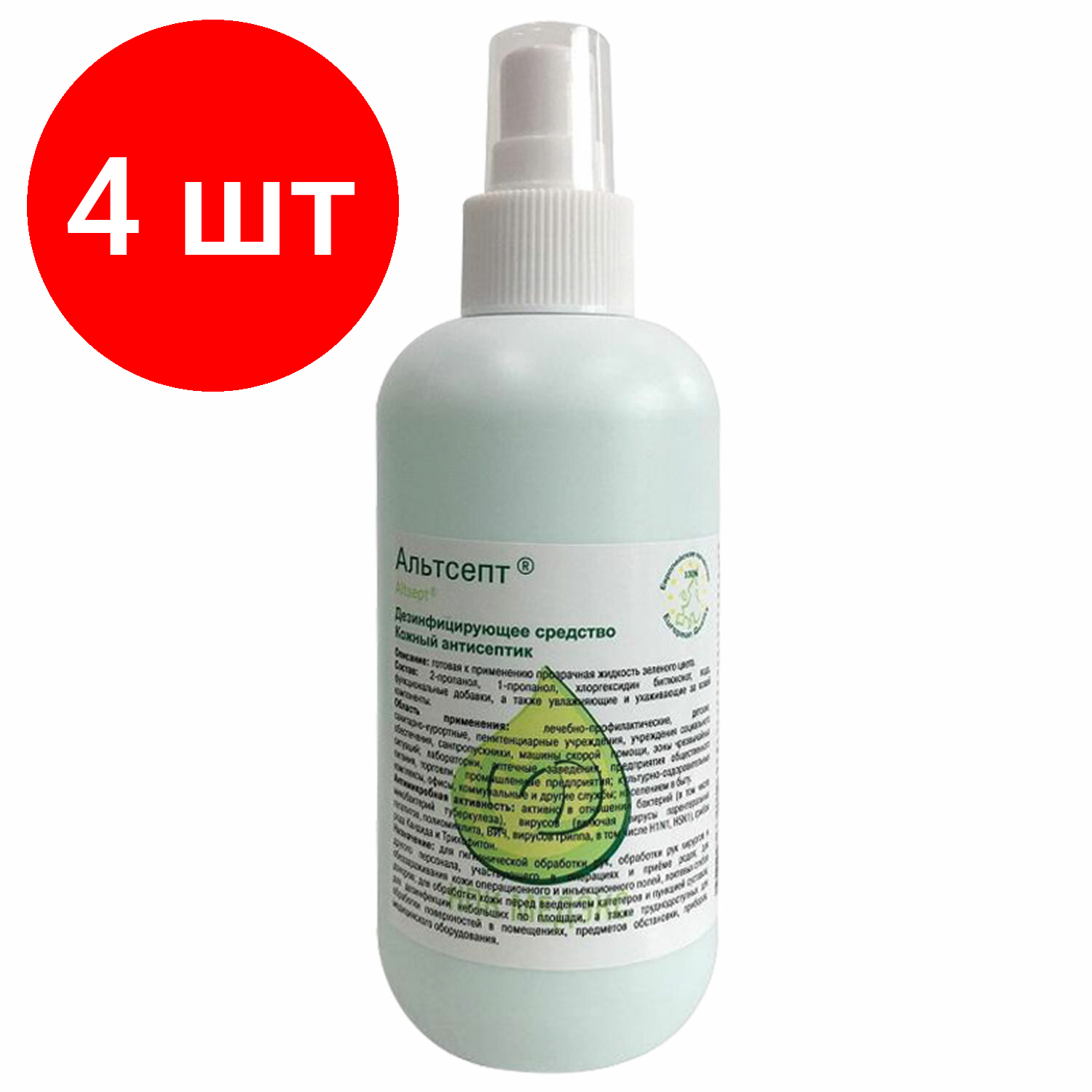 Антисептик для рук и поверхностей спиртосодержащий (70%) с распылителем 200 мл альтсепт дезинфицирующий, 4 шт информация:
