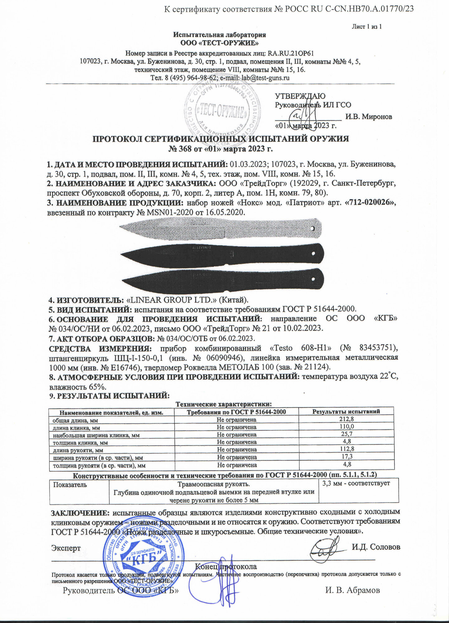 Отзывы на Ножи нокс 712-020026 (Патриот), набор спортивных ножей, сталь 50Х14МФ