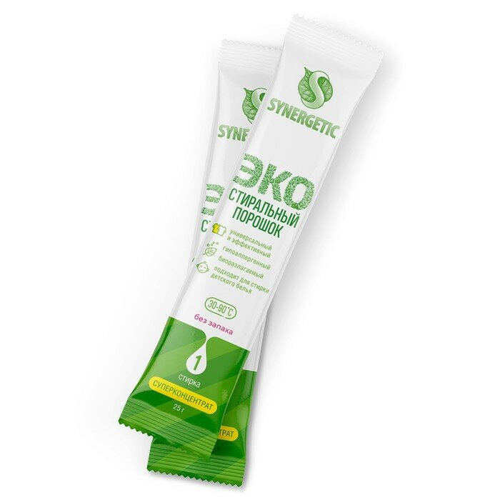 Стиральный порошок Synergetic, в стиках, 50 стирок, 50 x 25 г