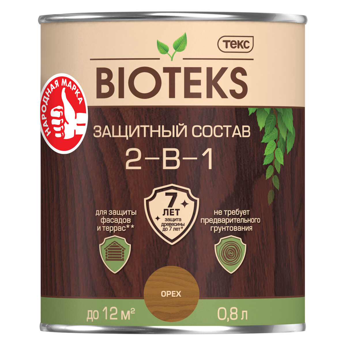 Текс BIOTEKS защитный состав 2-в-1 для наружных работ, орех (0,8л) информация: