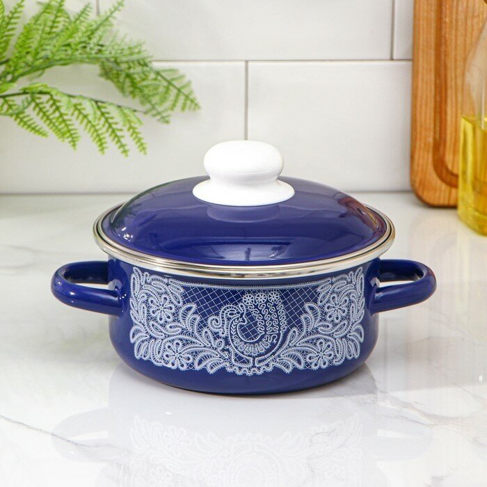 Стальэмаль Кастрюля «Вологодское кружево», 1,5 л, металлическая крышка, индукция, цвет синий