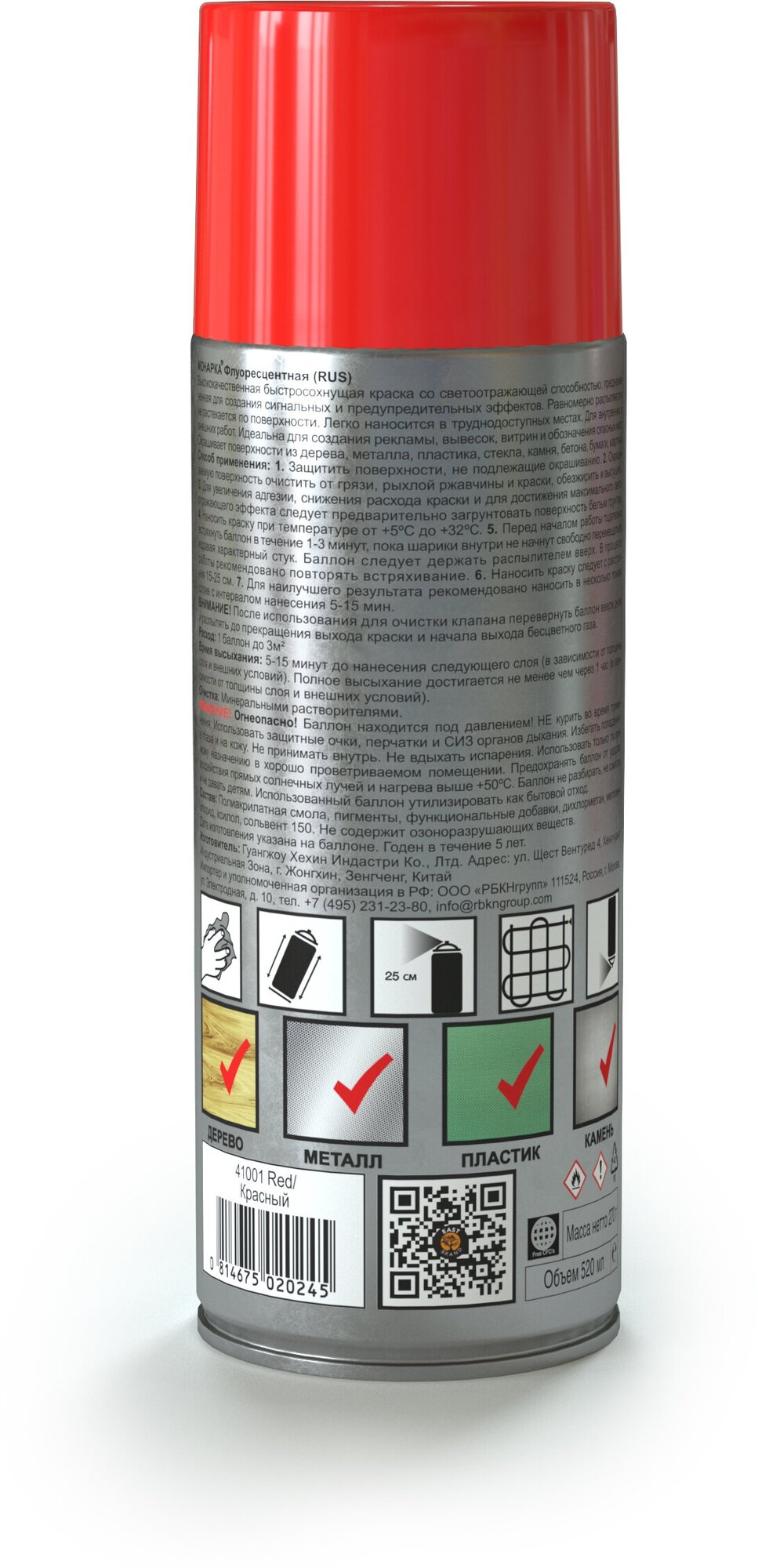 Аэрозольная краска MONARCA флуоресцентная Красный 41001 информация: