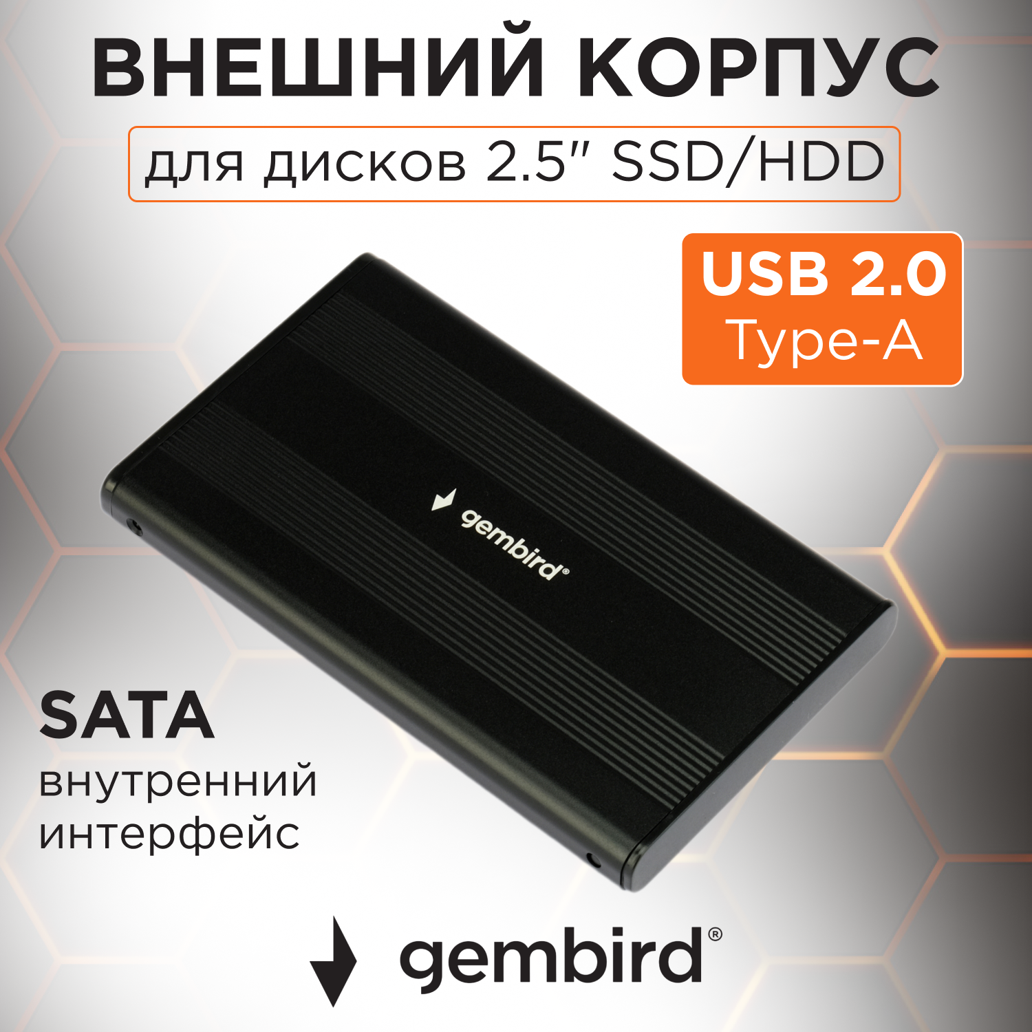 Внешний корпус 2.5" Gembird EE2-U2S-5, черный, USB 2.0, SATA, металл Gembird {100} 694 ₽