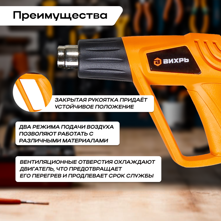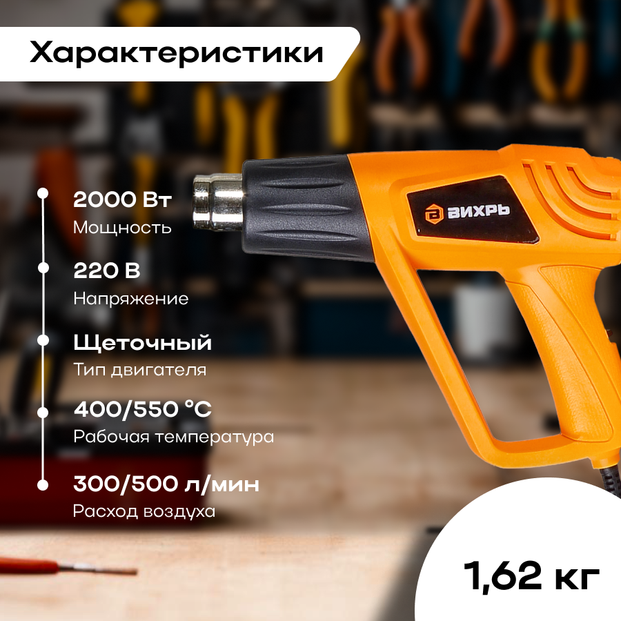 Строительный фен ВИХРЬ ТП-2000, 2000 Вт оранжевый