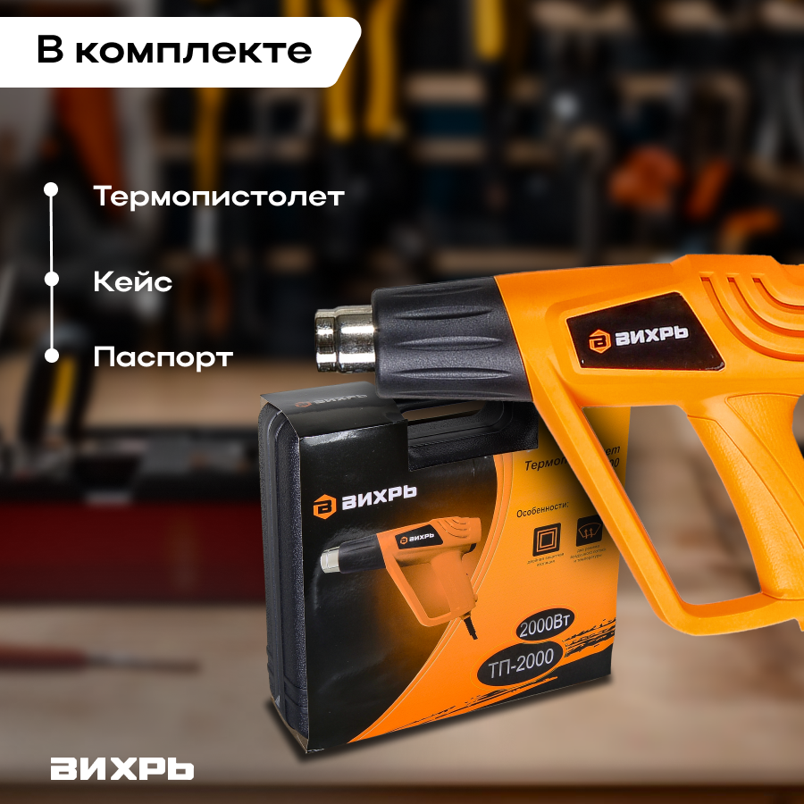 Термопистолет вихрь ТП-2000, 2000 Вт, в кейсе, 72/2/1