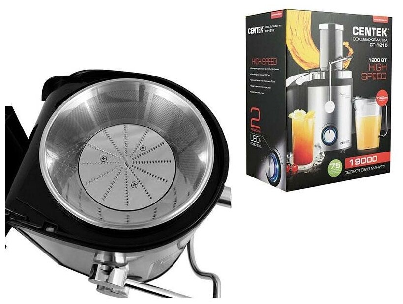 Центробежная соковыжималка CENTEK CT-1215, черный/серебристый