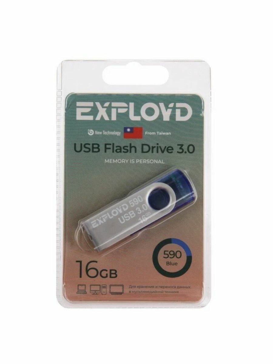 Флешка Exployd 590, 16 Гб, USB3.0, чт до 70 Мб/с, зап до 20 Мб/с, синяя