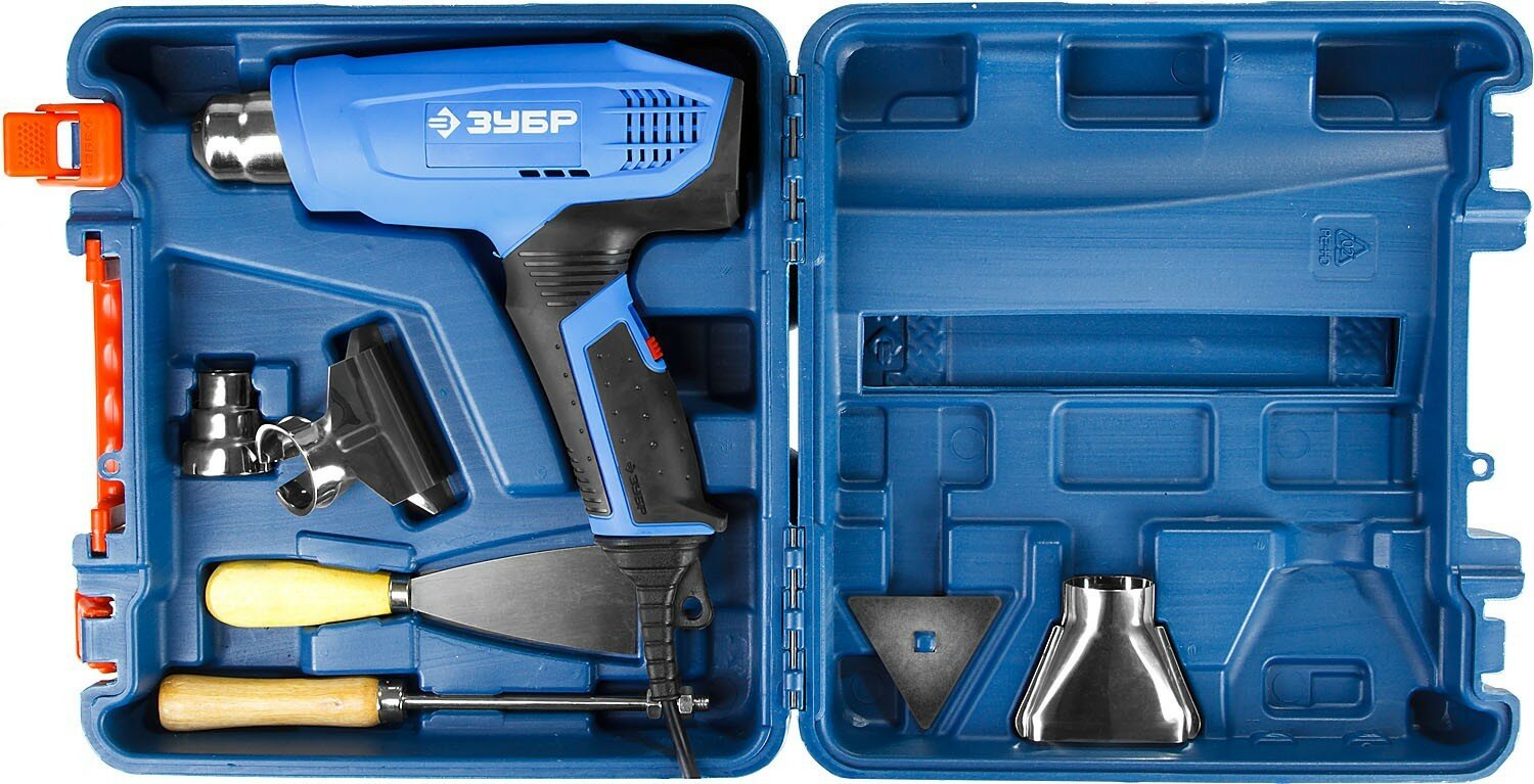 Строительный фен ЗУБР ФТ-П1800 К Case, 1800 Вт черный/синий