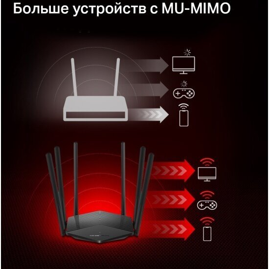 MERCUSYS AC1900 Двухдиапазонный гигабитный Wi-Fi роутер, до 600 Мбит/с на 2,4 ГГц + до 1300 Мбит/с на 5 ГГц, 6 фиксированных внешних антенн, 2 гигабитных порта LAN, 1 гигабитный порт WAN 3 137 ₽