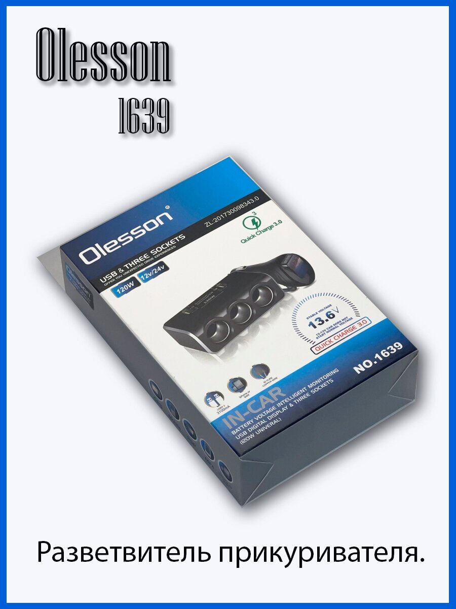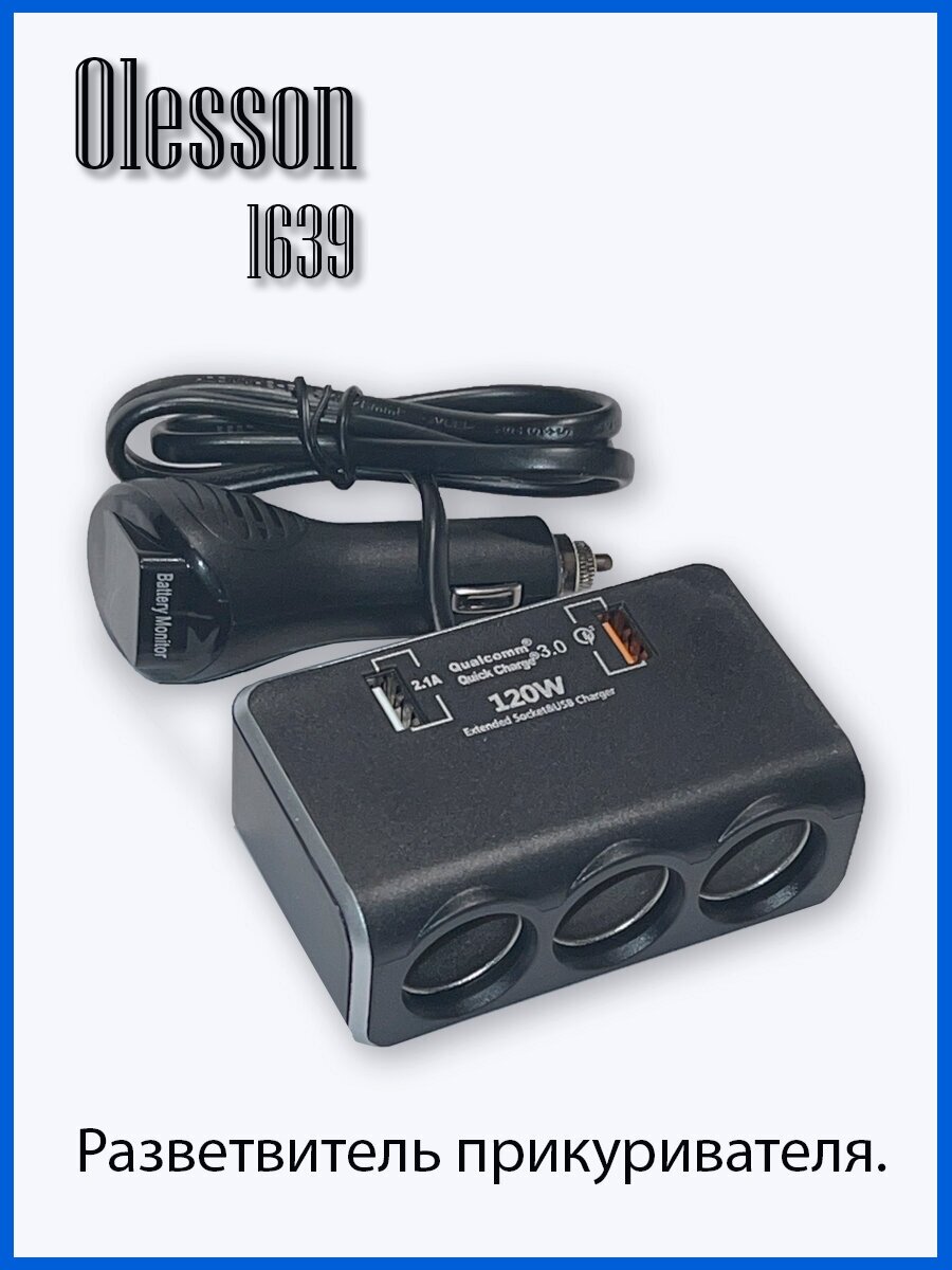 Разветвитель прикуривателя Olesson 1639, чёрный информация: