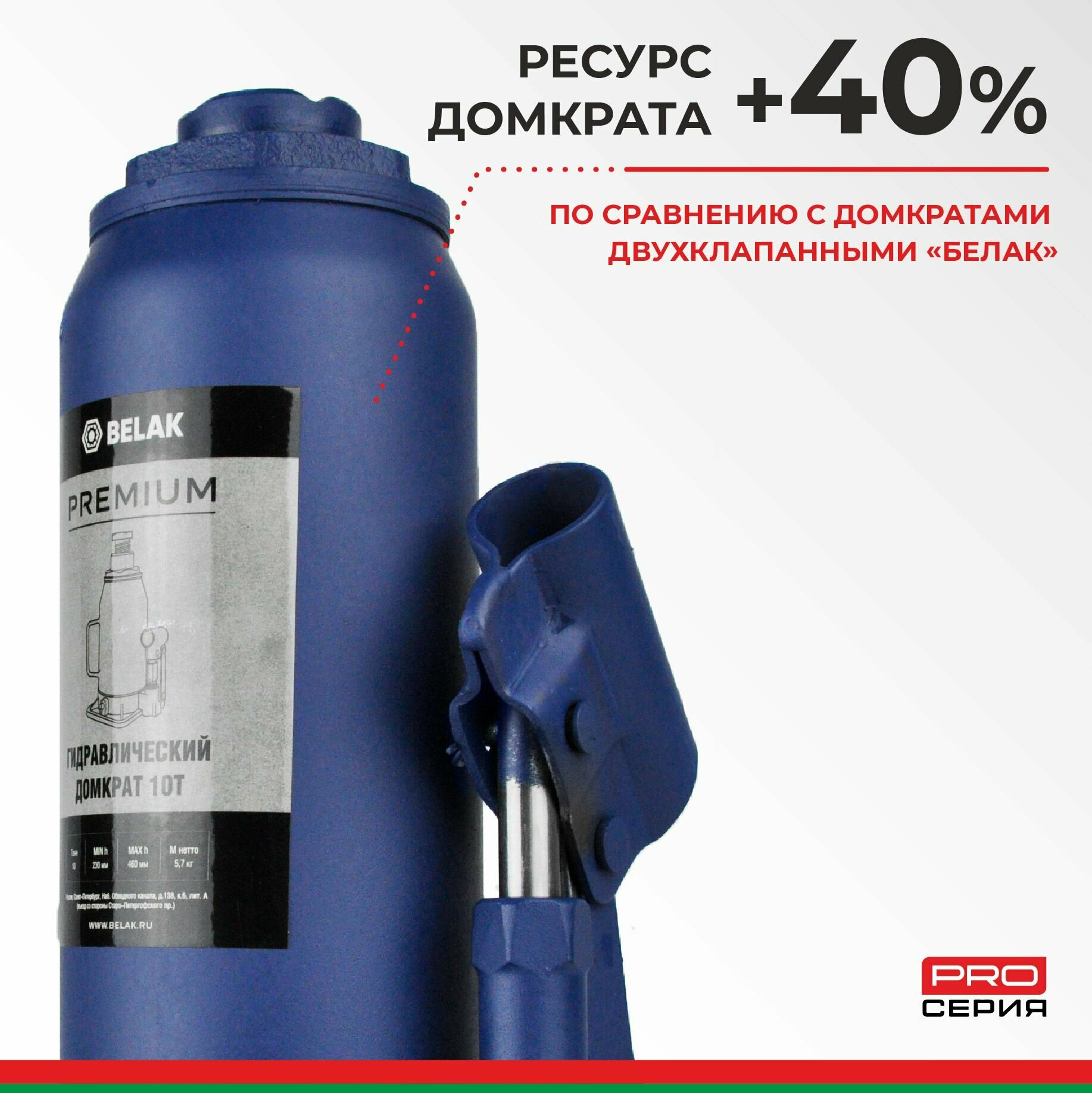 Белавтокомплект BAK.30016 Домкрат 10 тонн PREMIUM "BELAK" (TUV, 2 клапана, 230мм-460мм)