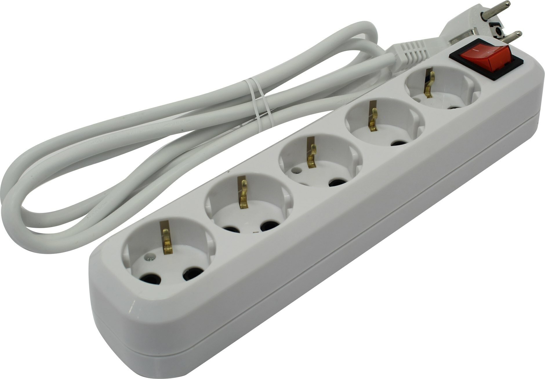 Сетевой фильтр 5bites SP5W-218 5S, 5 розеток, 1.8 м, 10 А, 3х0.75 мм2, с выкл, белый