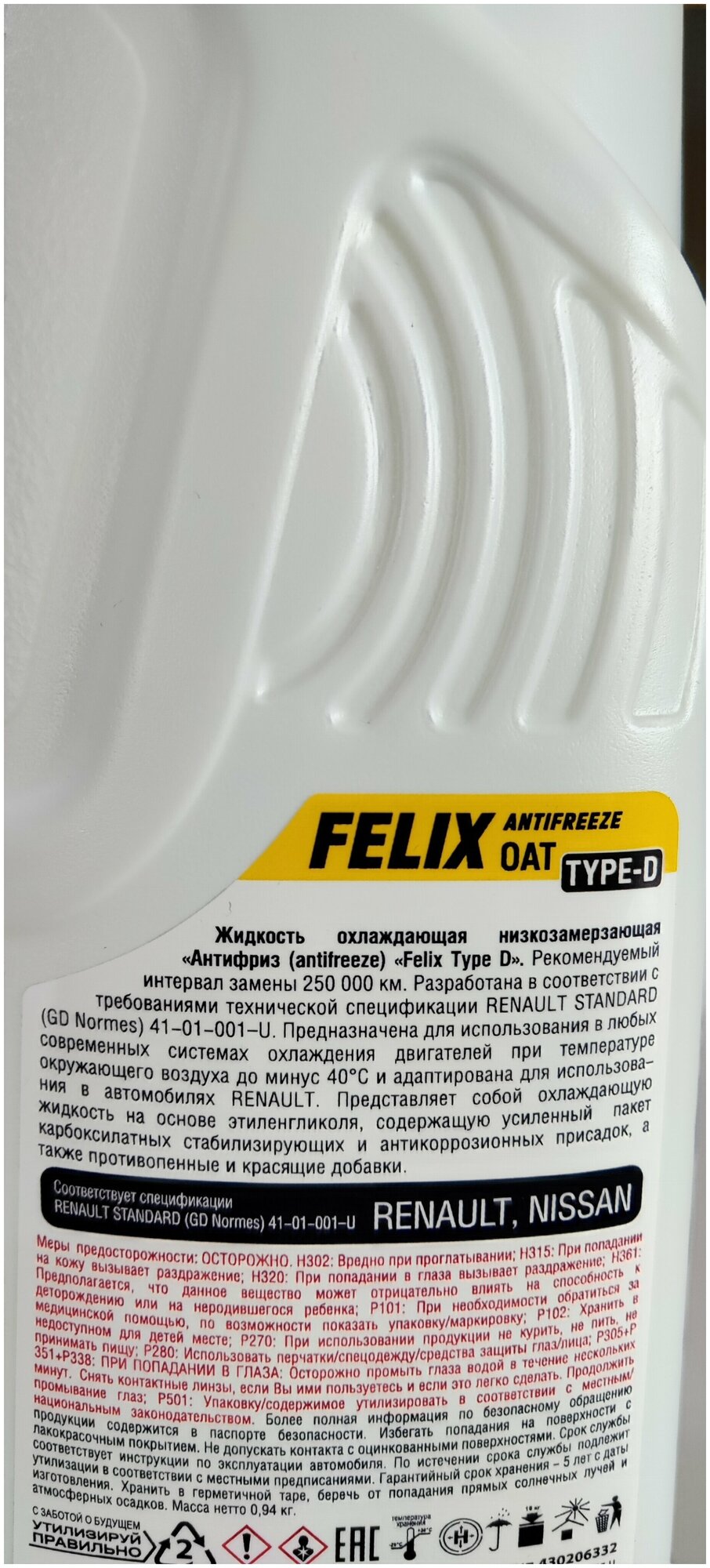 Антифриз FELIX TYPE D 5кг (Renault, Nissan, Citroen, Peugeot)