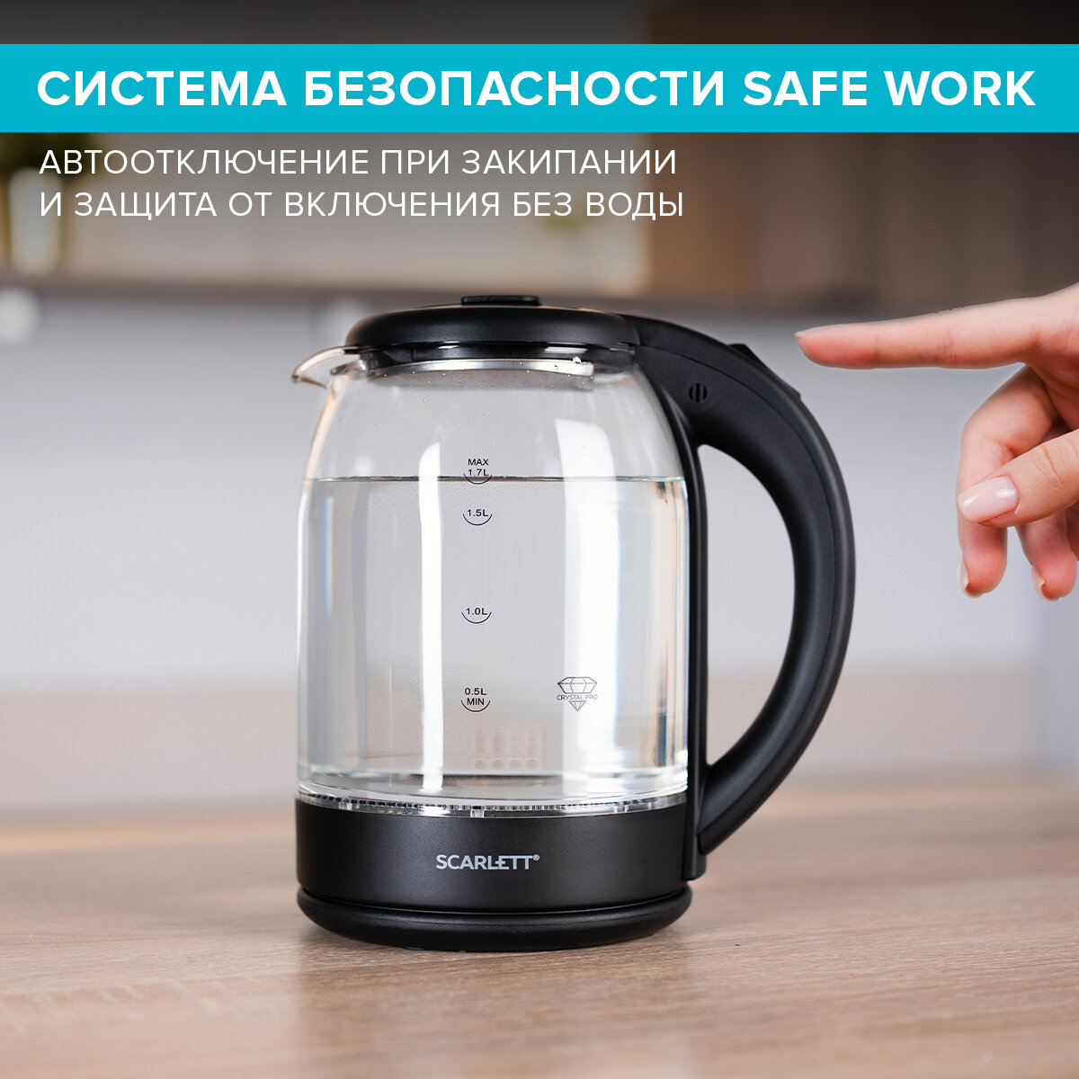 Чайник электрический SCARLETT SC-EK27G90, стекло, 1800Вт, 1.7л, черный информация: