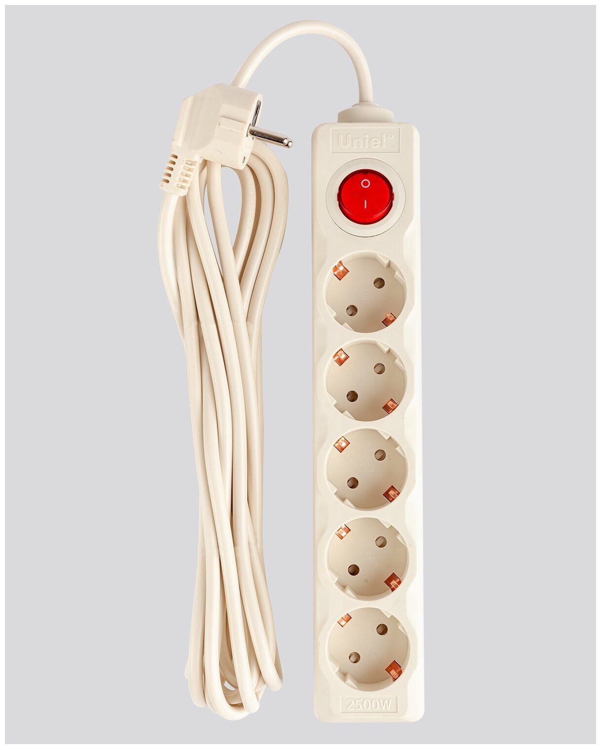 Uniel S-GSU5-5 IVORY Cетевой фильтр серии Universal, 5м (Пвс 3*0,75), 5 гнезд, с/з. 10А. Защита от перенапряжения, короткого замыкания. TM Uniel., шк