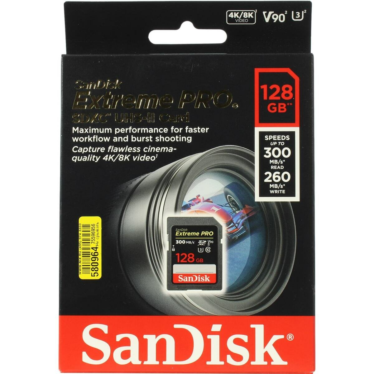 Карта памяти SanDisk Extreme Pro SDXC 128GB UHS-II U3 V90, R/W 300/260 МБ/с