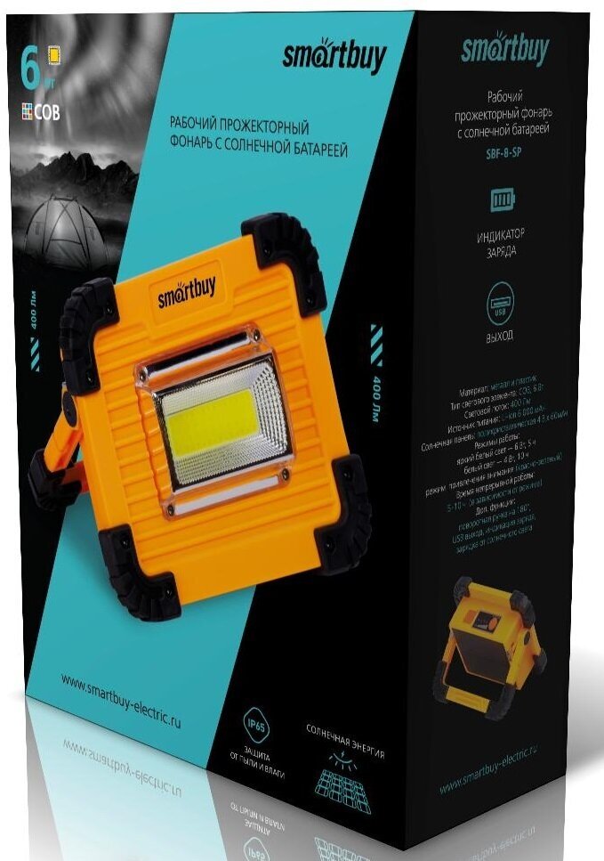 Smartbuy Рабочий прожекторный фонарь с солнечной батареей SBF-8-SP информация: