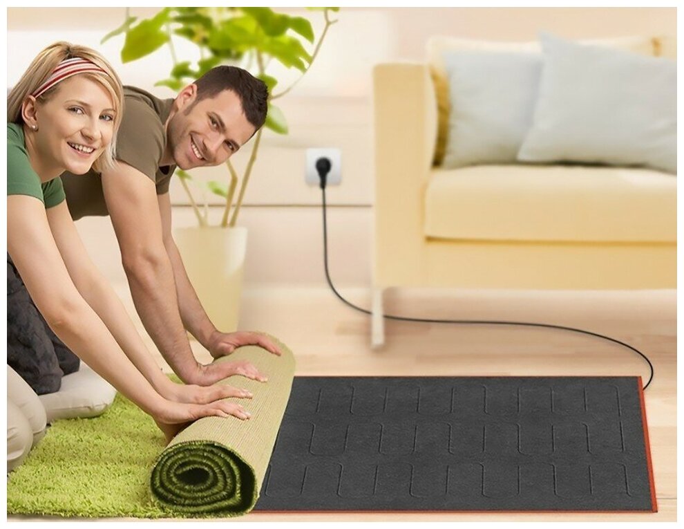 Теплый пол электрический под плитку Ридан TF-150 0,5 м2 нагревательный мат тонкий на самоклеящейся сетке