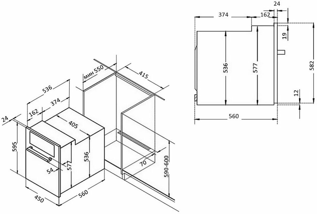 Духовой шкаф встраиваемый LEX EDM 077 C IV, 60 см, с конвекцией, механические ручки, объем 60 л, аналоговый таймер, телескопические направляющие.