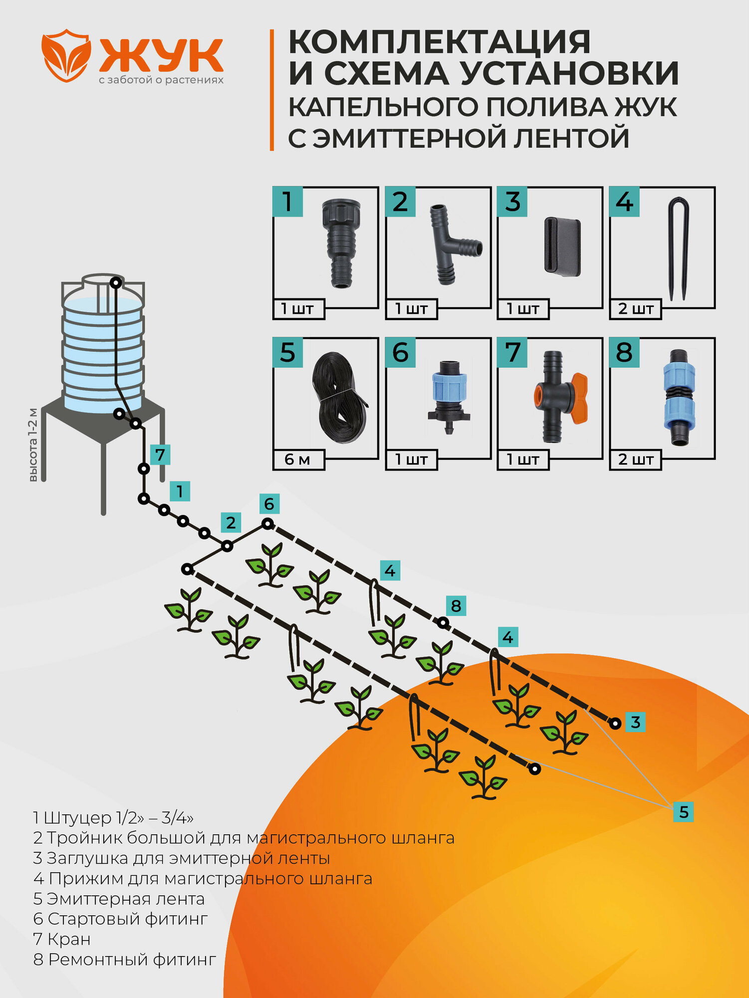 Комплект расширительный для капельного полива Жук, с эмиттерной лентой, 6 м