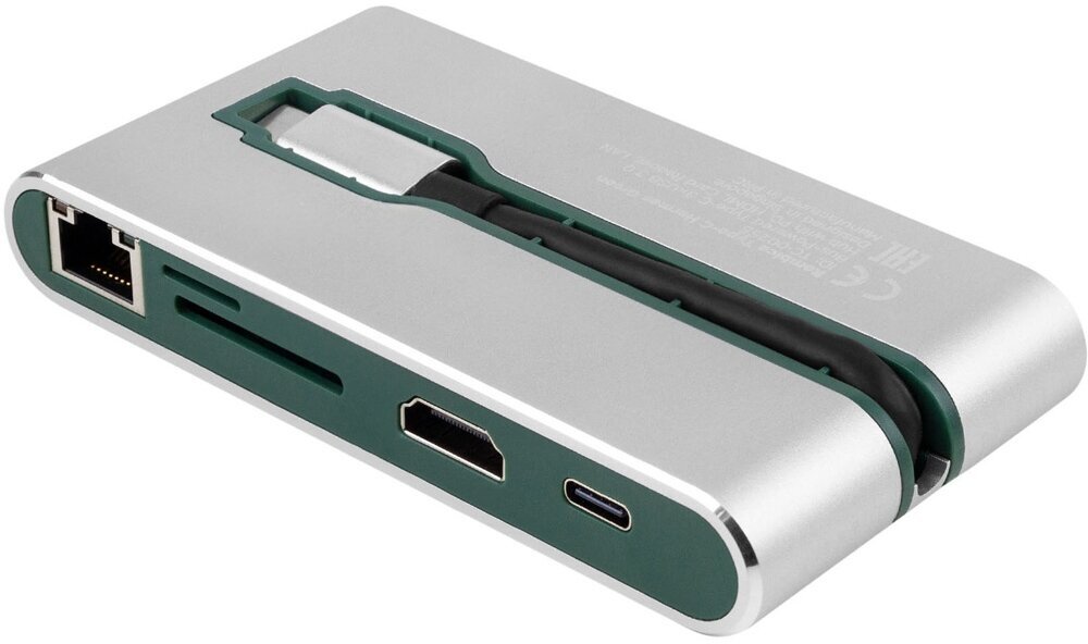 Концентратор Rombica Hermes Green TC-00255 3*USB 3.0, USB Type-C, SD, microSD, HDMI, RJ-45