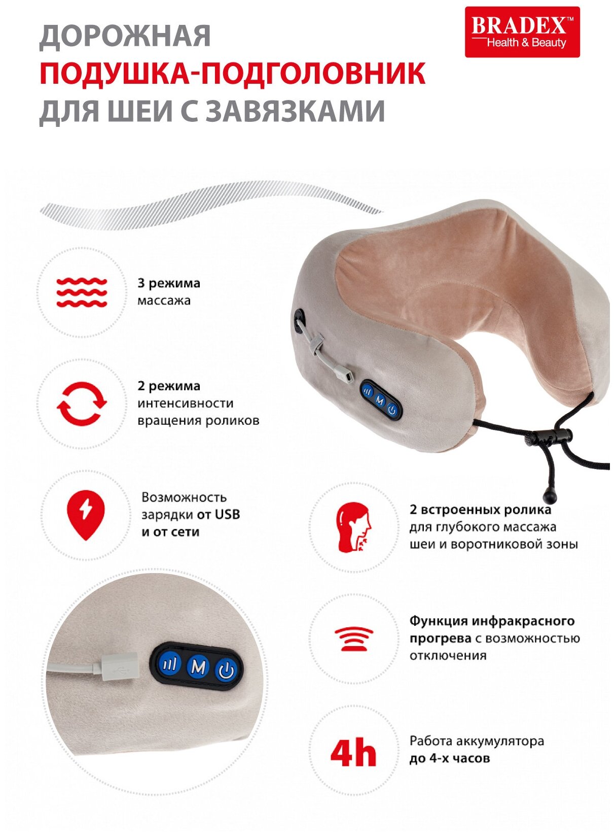 Массажная подушка для шеи Bradex KZ 0557