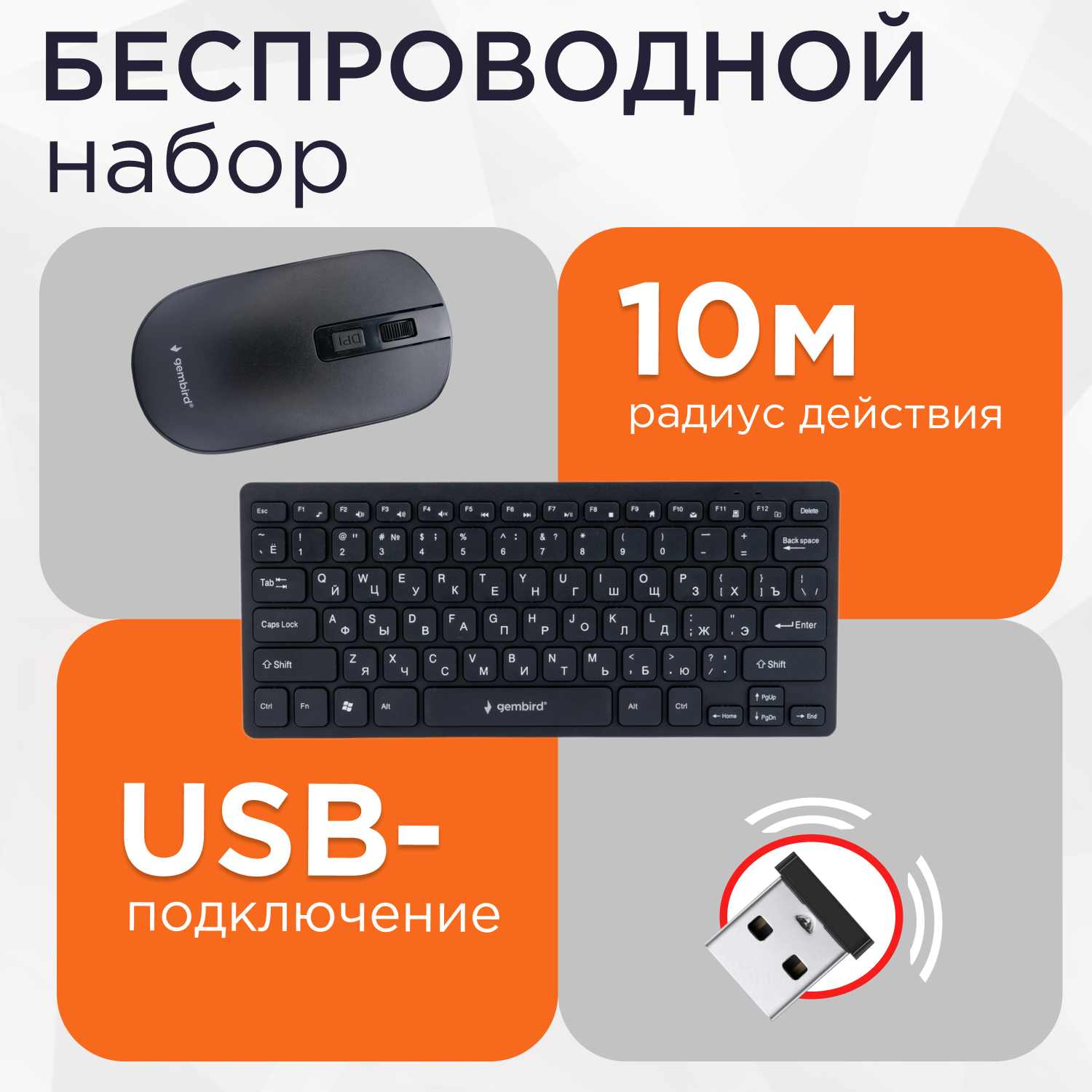 Беспроводной комплект клавиатура+мышь Gembird