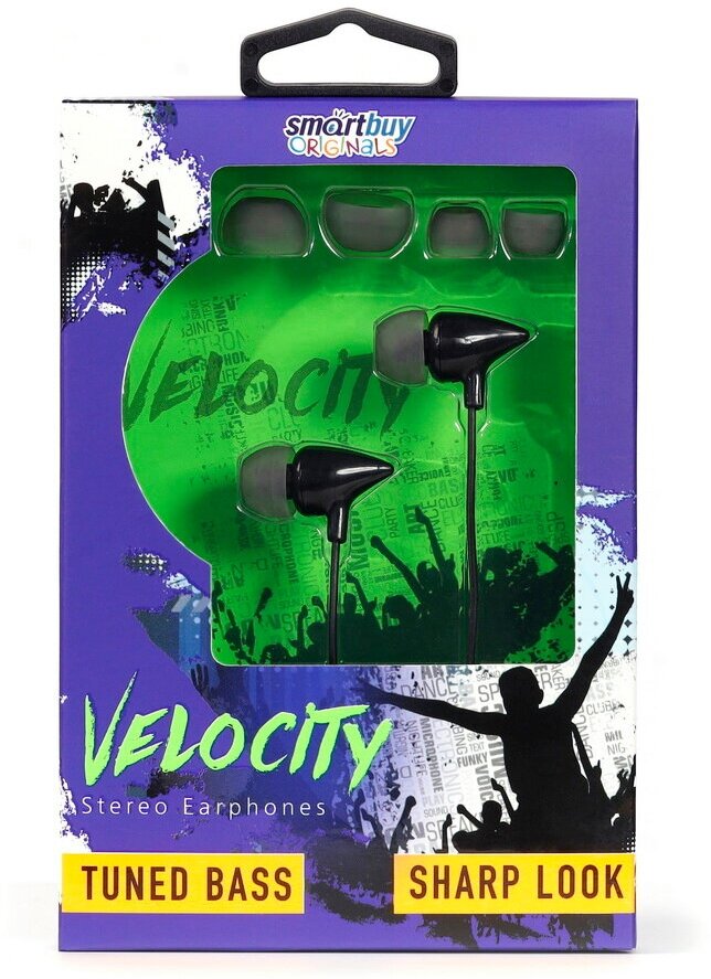 Наушники внутриканальные SmartBuy VELOCITY, 10мм, сменные амбушюры, черные (SBE-501)/32, 1 шт информация: