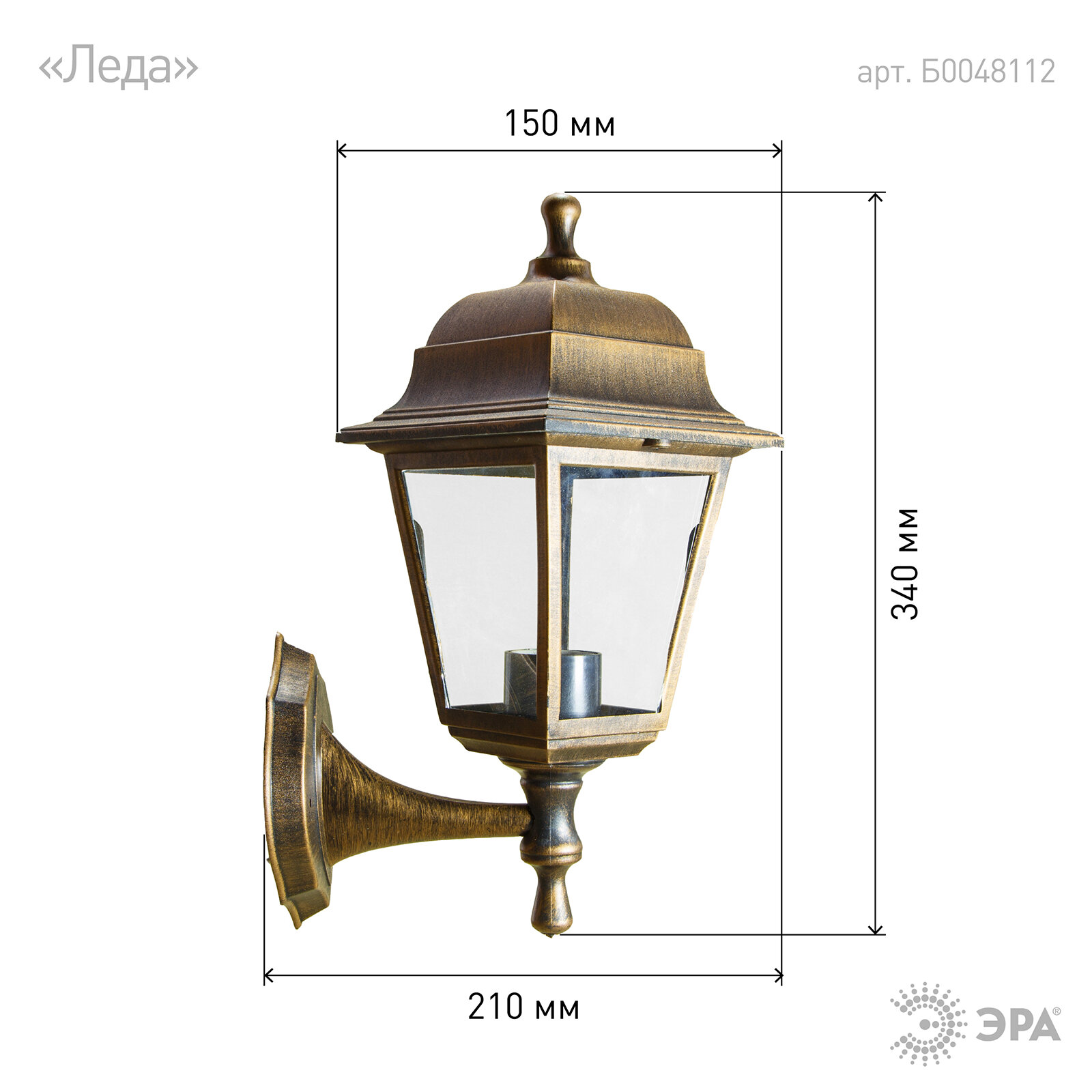 Светильник садово-парковый ЭРА НБУ 04-60-001 Леда настенный четырехгранный под бронзу E27 арт. Б0048112 (1 шт.)