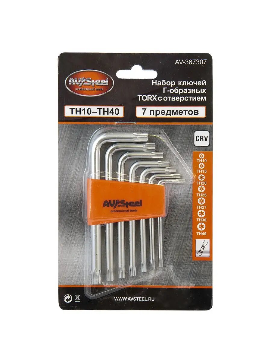 Отзывы на Набор ключей Г-образных TORX с отверстием TH10-TH40 "AV Steel" 7 предметов