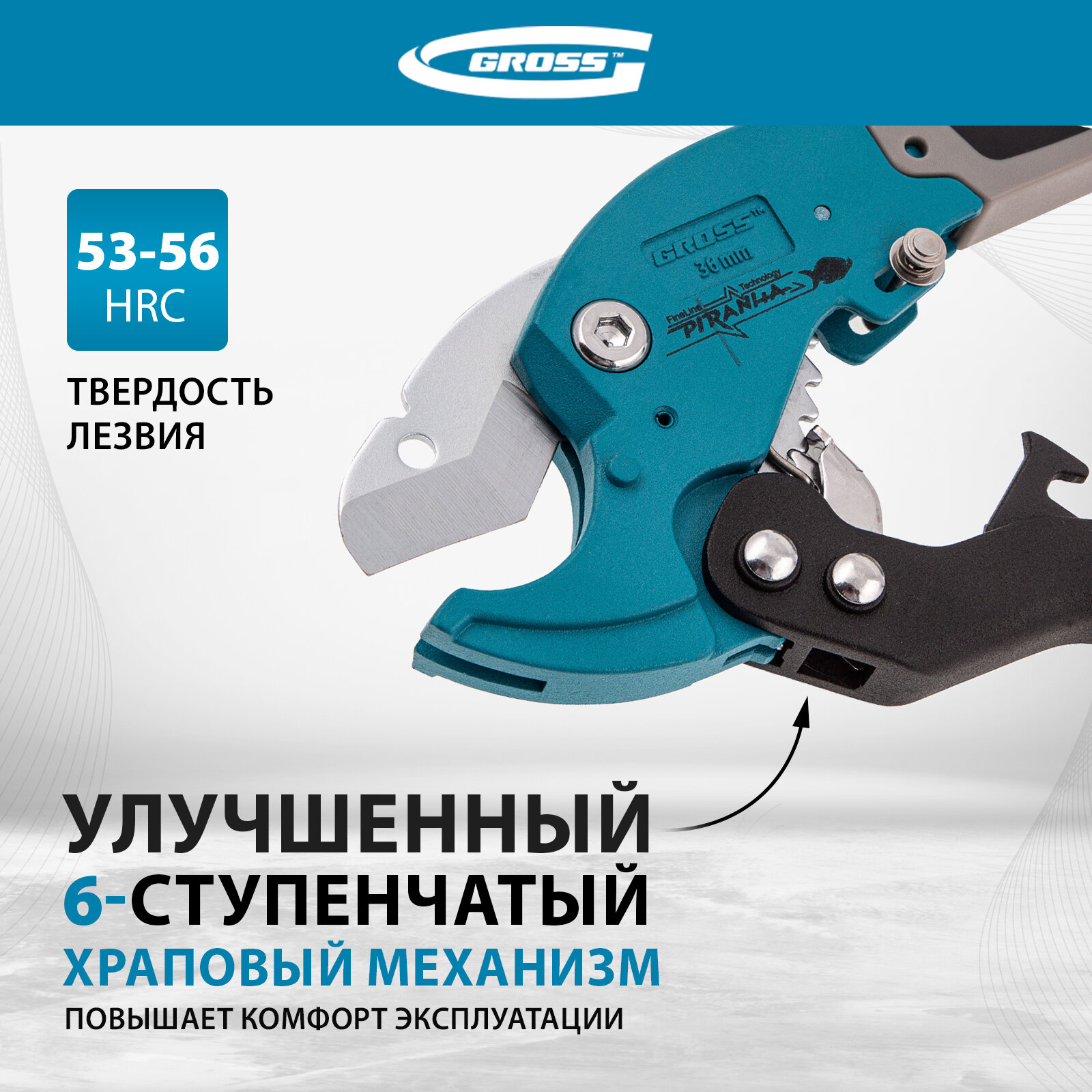Ножницы для резки изделий из ПВХ, D до 36 мм, двухкомпонентные рукоятки, рабочий стол для плоских изделий Gross