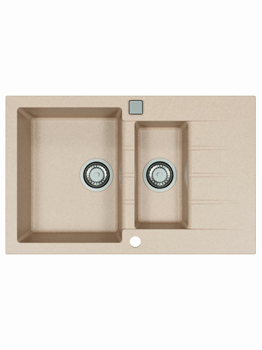 Каменная мойка для кухни с двумя чашами и крылом ALVEUS GRANITAL CADIT 70 BEIGE - G55 790 X 500 искусственный камень гранит с сифоном. Цвет бежевый