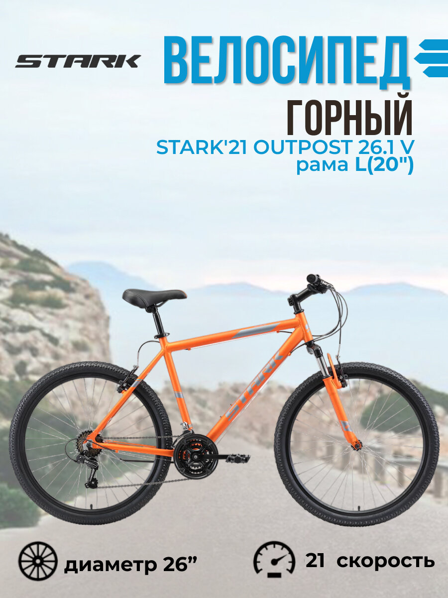 Велосипед Stark'21 Outpost 26.1 V оранжевый/серый 21 скорость рама M (18") HD00000108