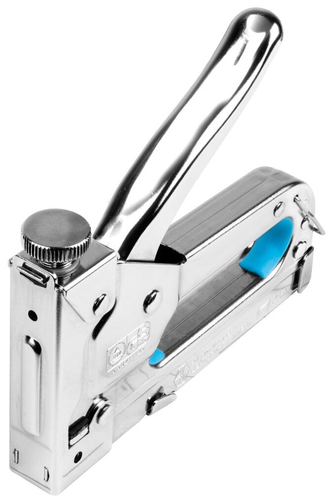 Степлер строительный NAGAN тип 53, скобы 4-14 мм металлический, регулировка удара, двухкомпонентная рукоятка
